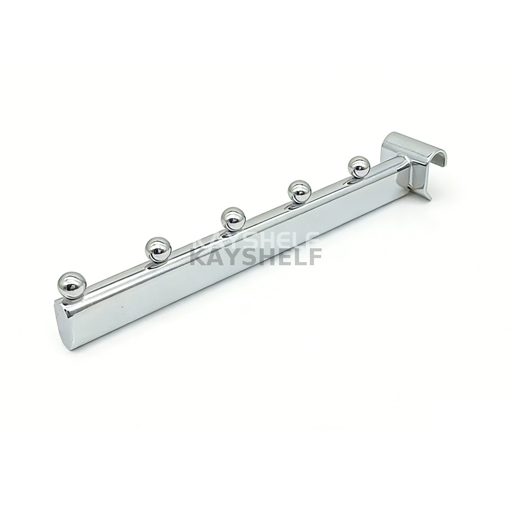 Chrome 5-Ball Display Hook for Oval/Rectangular Crossbar, Metal Clothing Rack Arm, Garment Display Bracket for Retail Store Fixture